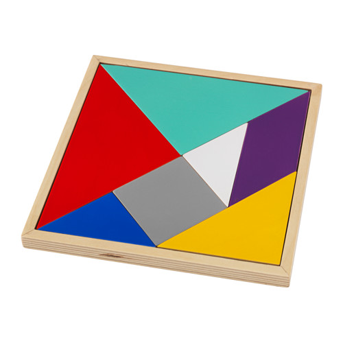 탱그램은 조각으로 잘라 놓은 것을 여러 형태로 맞추는 퍼즐로서 7개의 도형(각 도형을 tan이라고 함)으로 구성되며, 각각의 도형은 7개의 무지개 색상을 가집니다. 이러한 도형들을 배치하여 전체적인 형태를 만들어낼 수 있는데, 한가지가 아닌 다양한 형태를 만들어낼 수 있습니다.