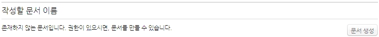 1. 일반 게시판과 달리 입력 버튼이 없다. 우측 상단의 입력창에 작성하고자 하는 문서 제목을 입력후 "이동" 을 클릭한다.