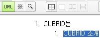 1. URL추가는 입력한 문서 제목 전체를 선택한 후, 입력기 상단의 "URL" 버튼을 클릭한다.