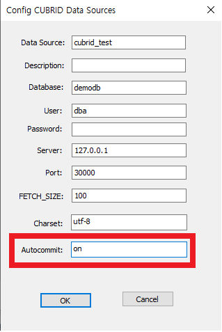 1. odbc dsn 설정 창에서 autocommit 을 on으로 변경